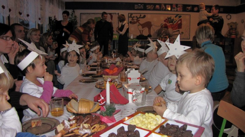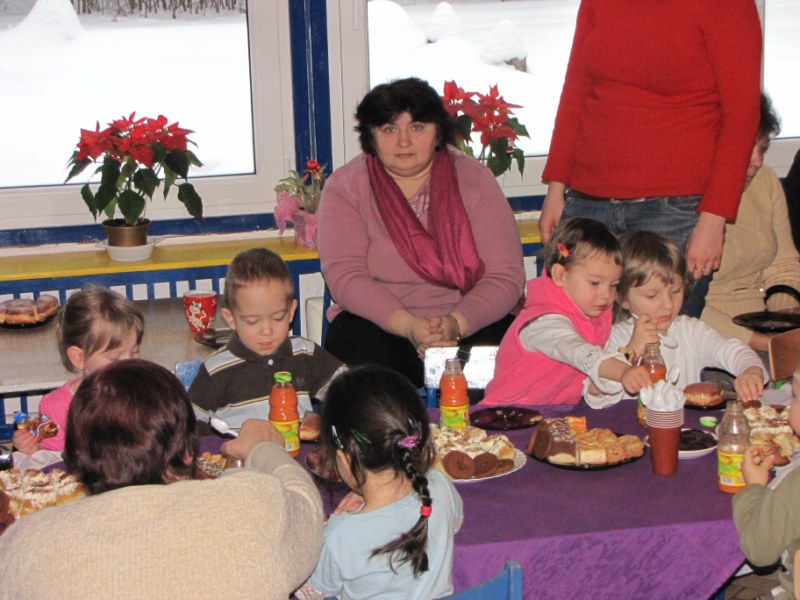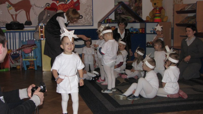 Dzieci przygotowały część artystyczną na święto Babci i Dziadka. Panie wychowawczynie pomogły przy wykonaniu laurek dla gości (serce dla Babci i kwiatek dla Dziadka). Dzieci śpiewały znane piosenki: „Krakowiaczek”, „Poszło dziewczę po ziele”, „Chodź do mnie”. Na zakończenie zaśpiewały „Sto lat”. Po wręczeniu laurek wszyscy zasiedli do stołu i jedli słodkości.
