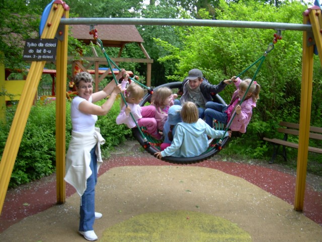 A kiedy wszyscy już zgłodnieliśmy pyszne drożdżówki zajadaliśmy. Na koniec wycieczki plac zabaw zwiedzamy i helikopterem w obłokach bujamy.