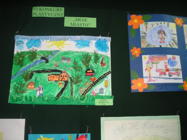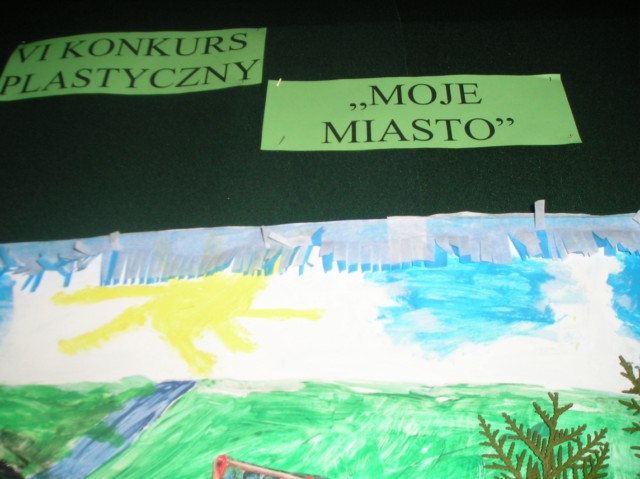 Uczestnicy konkursu wykonali w domu przy pomocy rodziców prace plastyczną dowolna techniką plastyczna na temat „ Moje miasto”.