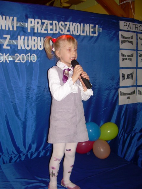 18.05.2010r. już po raz 5 odbył się w naszym Przedszkolu Konkurs Piosenki "Śpiewaj z Kubusiem". W tym roku zgłosiło się 15 wykonawców, którzy prezentowali jedną dowolnie wybraną piosenkę.